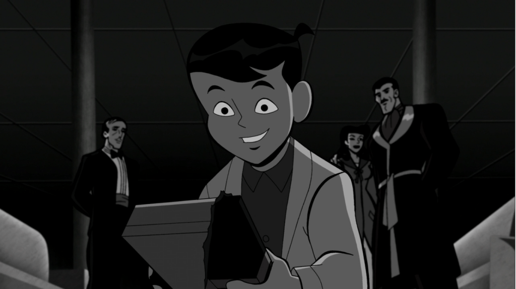 The depiction of Batman is also a lot of fun. He dishes out the corny one-liners, but with total sincerity. Diedrich Bader sounds authentic and he plays it straight so there isn’t a winking at the camera moment when it comes to Batman. He’s also allowed to possess some dry humor, though is largely a no-nonsense straight man expected to play off of his ally for a given episode. It was interesting to see Christmas incorporated into his origin story and actually surprising to see a new layer of grief added to that. It’s a very similar tactic to what we’ve seen done with Spider-Man’s origin. I think of the first Toby Maguire film where he basically tells off his Uncle Ben and his last discussion with him is one in which he hurt his father figure. He never got to make up for that, and Batman never got to apologize to his own dad for how he reacted to a very personal and meaningful gift that went unappreciated. Separately, it’s also interesting to see young Bruce portrayed as a spoiled, little, rich kid as opposed to some ideal. It makes more sense for him to behave that way as a rich kid so in a way it was sort of refreshing. And it can be inferred that the murder of his parents gave him some new perspective and began his transformation from a very selfish child to a selfless adult. The ending also has a hint of sadness, or melancholy, to it since Batman is so focused on being this crime fighter that he won’t even allow himself a moment’s reprieve after an all-nighter dealing with Fun Haus.