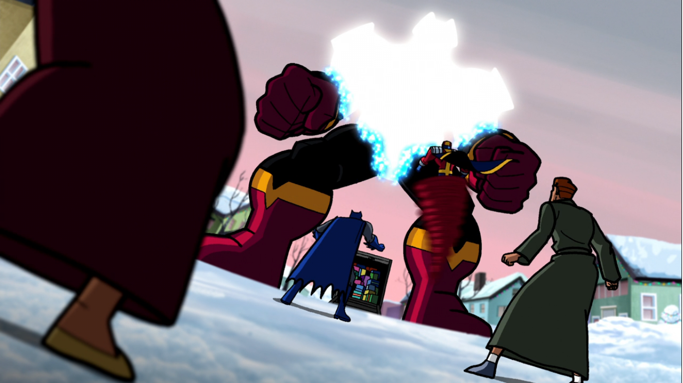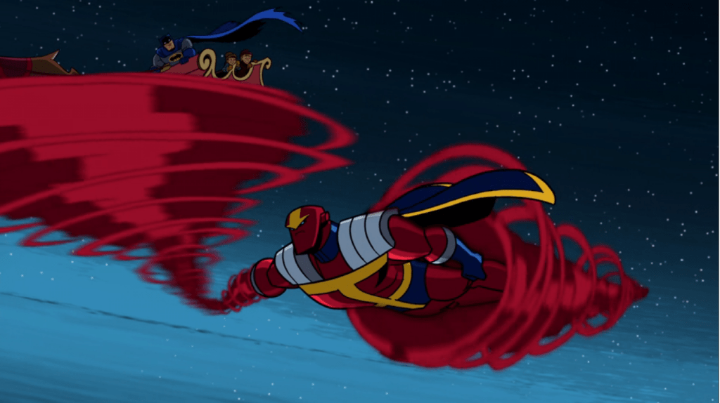 “Invasion of the Secret Santas” was a pretty fun little adventure for Batman and Red Tornado. For me, it was an introduction to Red Tornado who I can’t recall ever encountering before this. There are a lot of DC superheroes that I’m not familiar with, but usually I can at least say I’ve seen them in artwork or something, but with Red Tornado I have no frame of reference. It’s amusing to me that I looked at the Justice League Christmas episode earlier this year because Red Tornado and Martian Manhunter play similar roles as emotionless beings seeking to connect with Christmas. With Red Tornado, he’s more eager to experience an emotion he has no reference for. Maybe because the audience for this show was intended to skew younger is why Red Tornado is so vocal about his desire where as we’re expected to observe J’onn’s struggles in that episode without them being made so obvious. Though I’d argue it’s not exactly subtle, either. I wasn’t that enamored with the Justice League episode, but I like this. This show has a terrific visual style and it’s not really trying to look like a 90’s cartoon animated traditionally. It’s more willing to embrace the digital medium with bright colors, thick lines, and an intentional flatness to the characters. Batman himself reminds me a little bit of the character’s depiction in the minimally animated intro to the classic 1960s show. And it still has room for a little subtlety of its own, or at least audience autonomy, when it comes to Red Tornado’s experience of the Christmas Spirit in the end. Was it a mere malfunction, or something more? You decide.