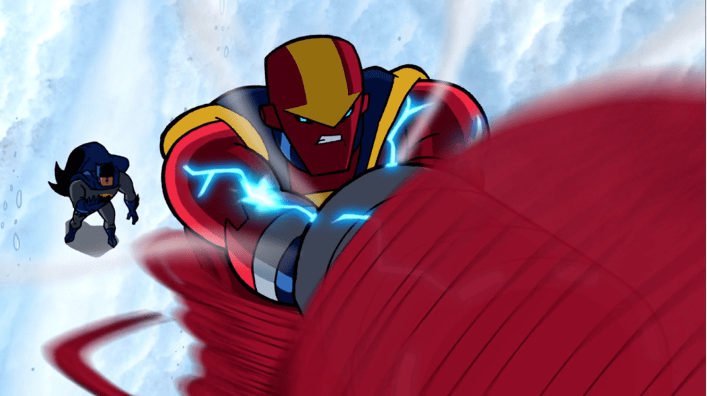 The fifth production episode, and fourth to air, of Batman: The Brave in the Bold is the subject of today’s post. “Invasion of the Secret Santas” is going to team Batman up with Red Tornado, a character I have zero knowledge of. That’s part of the appeal of the show as it seeks to spotlight some lesser heroes in the DC back catalog. I assume it also intends to do the same with villains since today’s villain is another character I have zero experience with: Fun Haus. He certainly sounds like a villain that could work with a Christmas plot, and at least Red Tornado has red in his name. A green outfit leading to a red-green tornado would have really made him fit even more.