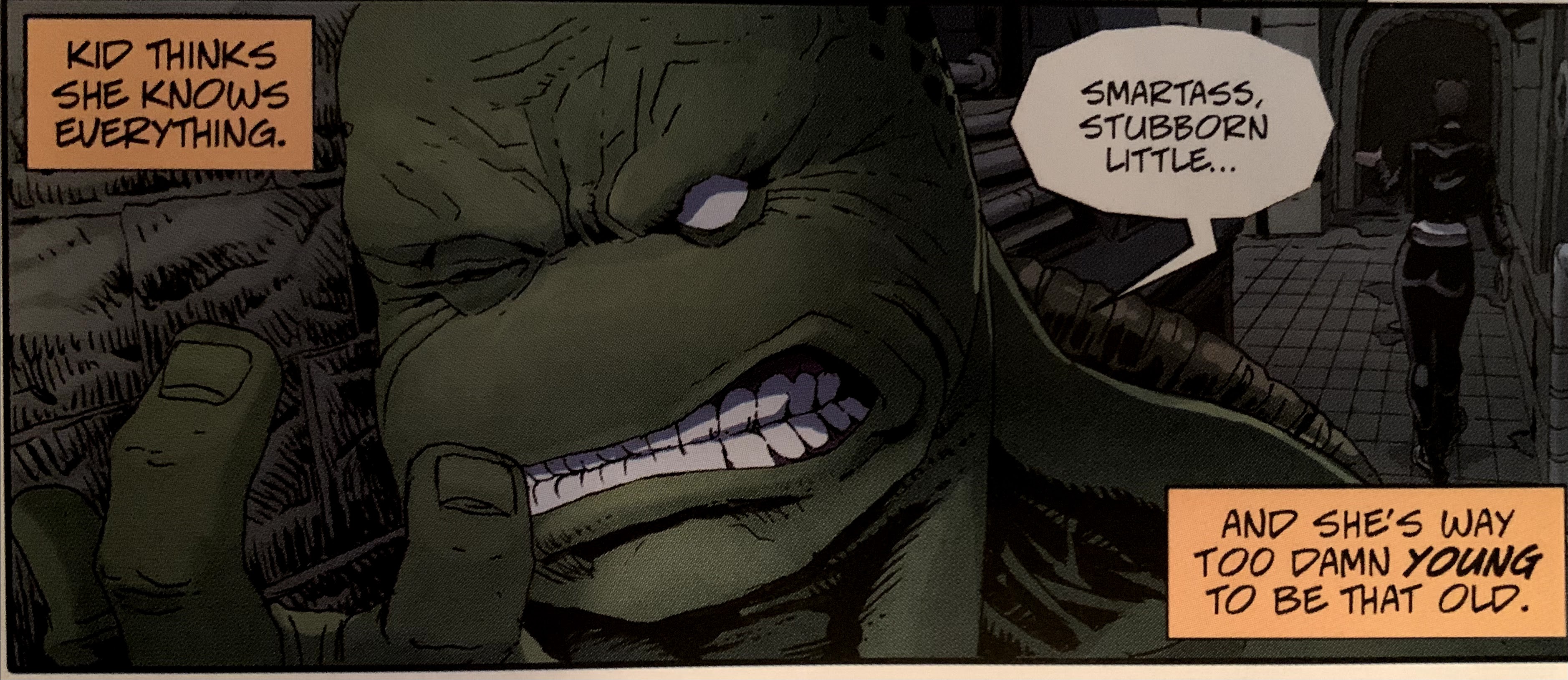 The Last Ronin tells the tale of the last of the Ninja Turtles. The first issue introduced this dreary future where New York is controlled by a descendent of Oroku Saki and times are bad. We get to see the last turtle on a suicide mission that’s basically a failure, since the villain isn’t toppled and the turtle isn’t dead! Over the next three issues, the plot advances quite slowly as Ronin (yes, I’m still committed to not spoiling anything) acquires some allies, but we also see lengthy flashbacks detailing how each of the brothers fell and the present came to be. The violence is not gratuitous, so while seeing our beloved childhood heroes actually dying is uncomfortable, it wasn’t exploitive in any way. The flashbacks are over though, and the stage is set for the final confrontation.