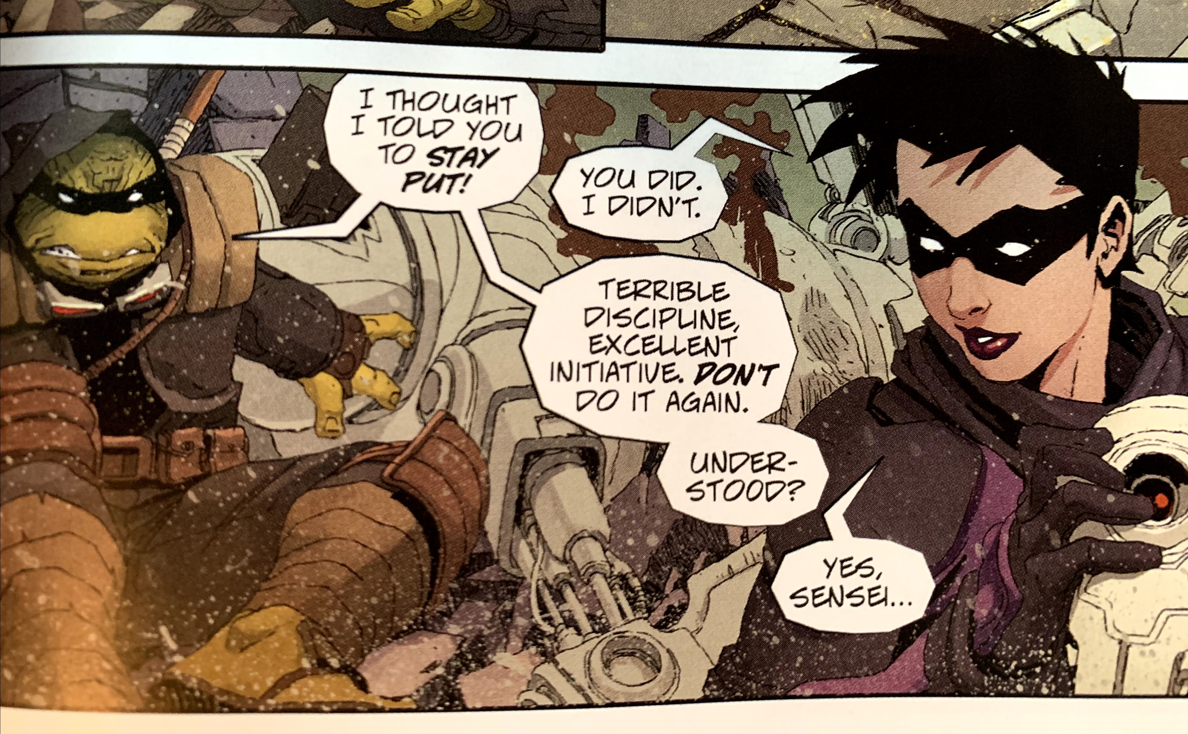 And if that’s all you wanted, you’re probably happy. For me, I found the first issue very intriguing, but every following issue was less interesting. The gravitas of this story demanded something a bit more epic, but we don’t get that. We don’t really get much character development either, only finally getting a glimpse of such at the start of this issue as Ronin tries to banish the “ghosts” of his brothers once and for all. It’s assumed they’re a figment of his imagination, but it was interesting to see how Ronin feels each brother views him. It might be something more interesting for me as someone who has not read the IDW series as I don’t know if it’s a lot of re-tread, but for me, it was the best part of the finale. The ending was very predictable. That’s not necessarily a weakness as many stories have obvious outcomes, but there wasn’t anything special tacked-on to that end to earn it.