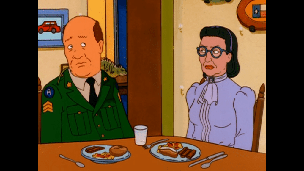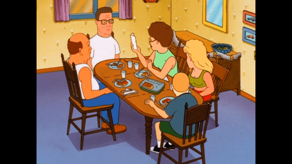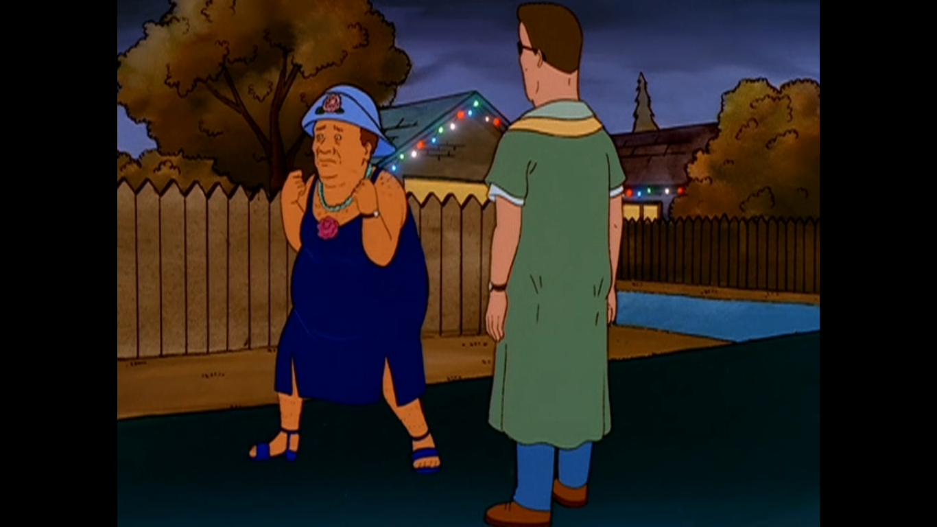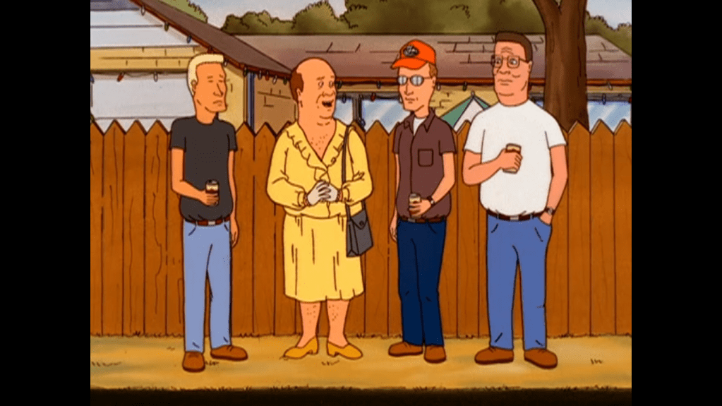 What it comes down to with this episode of King of the Hill is are you able to find humor in suicide and depression? If you can’t that is understandable and you will want to avoid this episode of King of the Hill. I think it arguably gets a little darker during the party when it looks like Bill is about to get lynched for presenting as a woman. Transgender rights weren’t as forefront in 1998 as they are now, but this episode did air just over two months after the murder of Matthew Shepard. King of the Hill rarely shows the ugly side of Texas when it comes to such things. Usually, the show delights in playing against expectations, but in that scene they presented a gathering of people who almost all seemed united in wanting to inflict harm on a biological male who dared to identify as a woman. It reads a lot heavier than maybe the show intended.