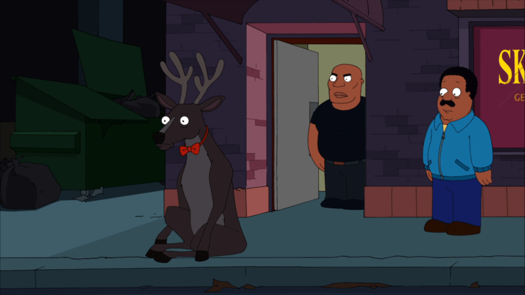 It was a week ago that we took a look at the Seth MacFarlane produced American Dad! and I remarked it had been a minute since we did an American Dad! Christmas episode. Well, it’s been even longer for the MacFarlane original, Family Guy, the show that was famously unloved, cancelled, and then brought back from the dead. It’s pretty incredible that Family Guy is now over 400 episodes in total. It’s also somewhat appropriate that we look at another Christmas episode from the show in the year 2024 as, for the first time since its revival, it feels like Family Guy may be in some jeopardy. That’s because Fox kicked it out of its Animation Domination Sunday night block and moved the show to Wednesdays. As of this writing, Family Guy has not been renewed past its current season, but that’s not unusual for the current television landscape. If Wikipedia can be trusted, the show was threatening to dip below 1 million viewers per episode when last season ended, would dropping below that merit cancellation? Basically all shows on TV are seeing gradual declines in ratings (The Simpsons dipped below 2 million for the first time in its existence during the 2023-24 season) so it’s hard to tell just what warrants cancellation or renewal these days, but a major shakeup like moving from Sunday to Wednesday is something worth monitoring for fans of the show.