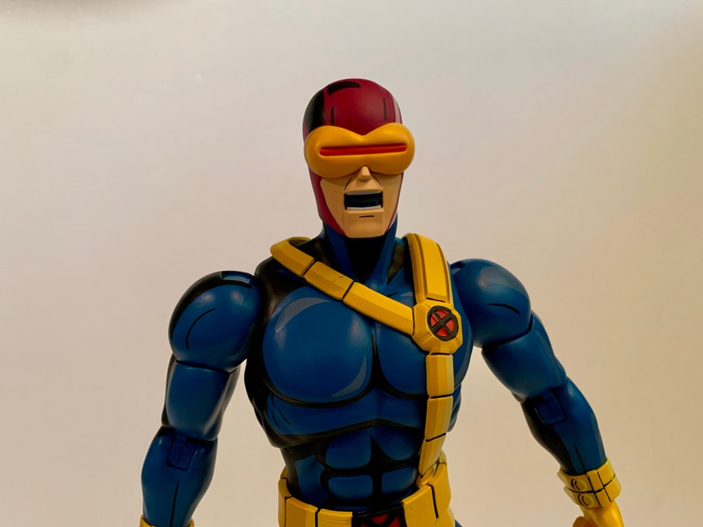 What really offers no room for disappointment is the paint. Mondo just slays when it comes to that part of the presentation and Cyclops is no different. The base blue is the perfect royal blue and the lighter blue used to shade it and the blacks all make him pop. The yellow is the right shade with just a hint of red of in it to lessen that lemony look the Hasbro figure of the same has. The different shades of gold used to apply the cel-shading for the yellow looks great and everything is rich and full. There’s an impressive lack of paint slop and issues as well. With such an ambitious paint job some of that is expected, but I’m finding it hard to notice with this one. There’s a visible brush stroke on the chest strap, but apart from that I’m at a loss. This is some really impressive execution so Mondo better hang onto whatever factory put this one together.