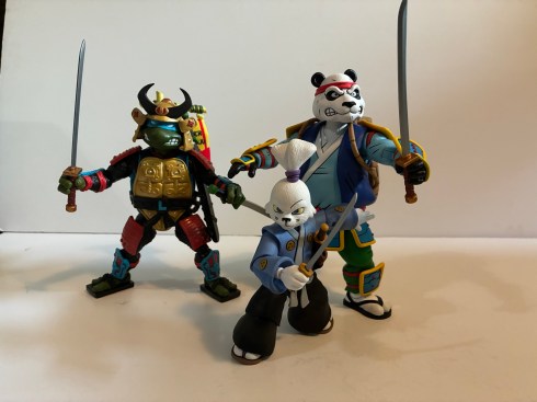 Panda Khan is a character that exists outside of TMNT media. If all you knew of him was the old Playmates toy, then that was probably not something you were aware of. The character was created by Monica Sharp and Dave Garcia and appeared in his own comic as well as some published by Mirage Studios. The character is actually named Li Yang, but goes by Panda Khan and he was essentially setup for the same deal as Stan Sakai’s samurai rabbit, which turtle fans know as Usagi Yojimbo. For one reason or another, Panda Khan’s appearance in the cartoon never happened and he forever remained one of those characters who existed for TMNT fans in toy form, but no where else. The character is now owned by Gaelstone Media who cut a deal with NECA for Panda Khan to appear in their toyline. The figure was unveiled last summer and can now be found at Target as part of this spring’s edition of Haulathon.