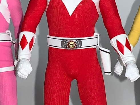 The female rangers are pretty much the same, only smaller, and with another detail I wasn’t anticipating. The pink and yellow rangers stand at just a tick under 6″ and I like the height separation between them and the boys. They have a more feminine shape with slender limbs compared to the males and a more defined hourglass shape to the torso without being unrealistically curvy. Kimberly, the Pink Ranger, has her skirt piece as well which seems to be just a separate piece that’s not sewn into place. The articulation feels to be the same, but the body underneath feels like it’s a silicon one. It’s my understanding Mezco tried this with a Spider Gwen figure and it’s being utilized here. The silicon body covers the torso, waist, and thighs and gives the figures a squishy feeling. These types of bodies are known for eventually cracking and tearing, but if it’s hidden underneath soft goods then who cares? I would think it’s an added expense so I’m surprised to see it in use here, but maybe this is a technique Mezco is going to utilize more going forward?