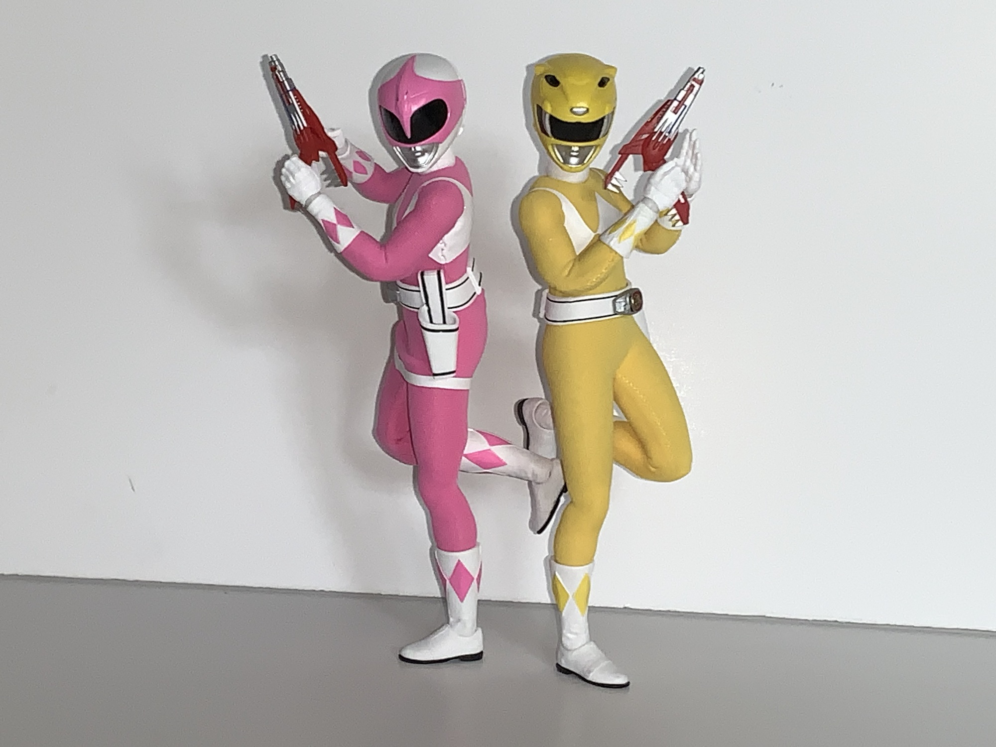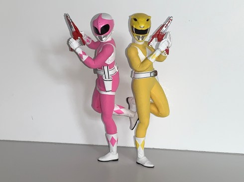 For whatever reason, this approach makes the women the more articulated of the pair. The actual articulation points are all the same, but they can really crunch forward and back in a way the males cannot. The legs seem to kick forward better as well and they also kick back all the way so they can theoretically do splits in both directions, though I still wouldn’t really advise it. The joints are stiff, but smooth, and if you have handled a figure like this in the past then you know what I mean. It’s a metal armature, basically, that’s inside the body so you do need to be somewhat mindful of that. Sometimes a joint can get pointed in a direction you weren’t expecting. As a result, the limb won’t move the way you want it to, but it’s just a matter of figuring out which swivel point got turned around and going from there. The one downside is it seems like joints can either separate or just aren’t tight enough. The right leg on my Pink Ranger doesn’t want to go out to the side and stay there. I don’t know if the hip is disconnected or if it’s just weak. It’s not floppy, but it sucks that the range isn’t there with her.