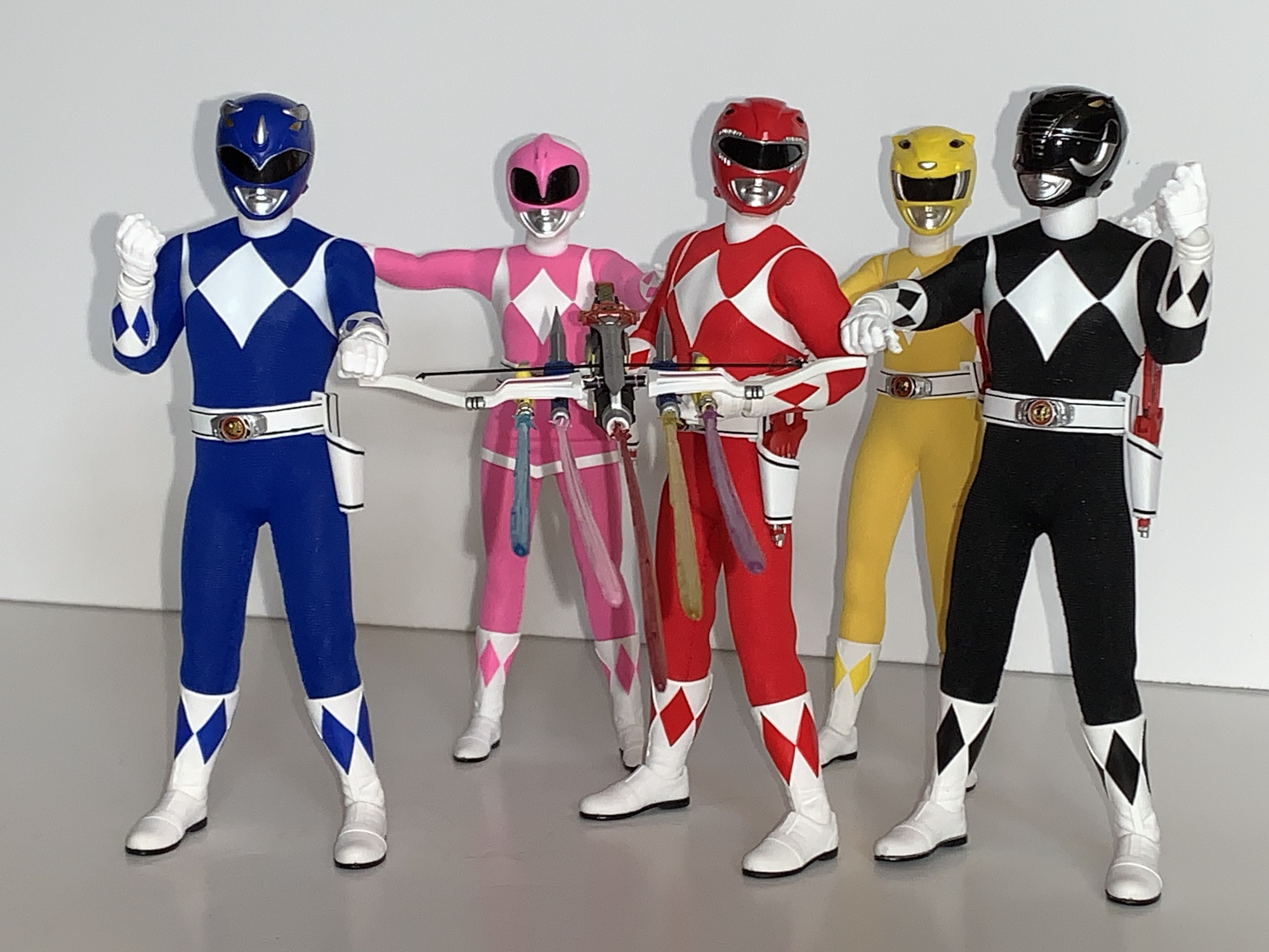 All of the characters come with an array of hands as well as an alternate, unmasked, portrait. The quality of the unmasked heads varies from character to character. I would say the Billy and Jason heads look really good, Zack and Kimberly okay, and Trini looks nothing like the actor. Billy doesn’t have his glasses which is technically accurate to the show, but for this era, I think most fans picture actor David Yost with his spectacles on. For hands, every Ranger comes with fists and gripping hands and then after that it varies. Red Ranger has a set of flat palms with his thumb to the side and a set of flats with his thumbs towards the palm. He also has martial arts posed hands (kind of his signature pose) and loose gripping hands. Black Ranger has the same, minus the martial arts posed hands, while Blue Ranger loses the flat palms with the thumb off to the side and the loose gripping hands, but picks up palm-striking hands. Yellow Ranger has the same spread as Black Ranger, plus a set of “Tiger Claw” hands. Pink Ranger has the most as she has the same spread as Yellow, but swaps the flat hands with thumbs turned inward in favor of splayed open hands like she just loosed an arrow. She also has an additional right hand specifically shaped for nocking an arrow. All of the male hands can be shared with each other and the same is true of the female hands, you just wouldn’t want to put a male hand on a female body and vice versa.