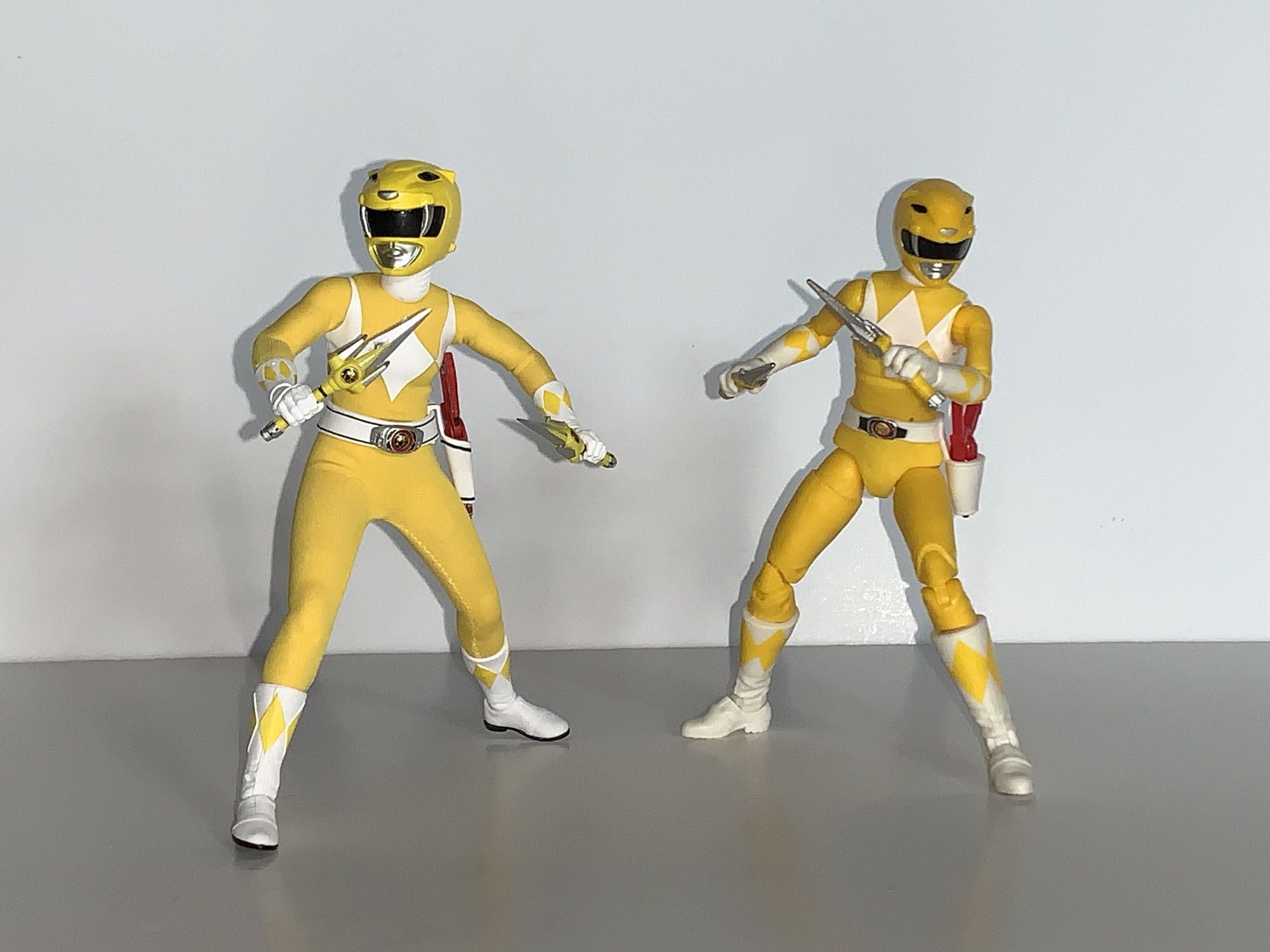 That’s not to say everything is perfect. While I think the proportions for the male rangers are pretty damn spot-on with the American show, there’s no denying that the Yellow Ranger looks off. The shape of the white diamonds on the torso of all of the figures are also off. It might be something where if you play with the suit enough you could smooth those lines out, but it’s certainly a hassle. The scale with the weapons is all over the place and the morphers on the belts are the wrong colors. Depending on your point of view, that’s either a bunch of nitpicking or a bunch of problems for figures that cost $80 a piece.