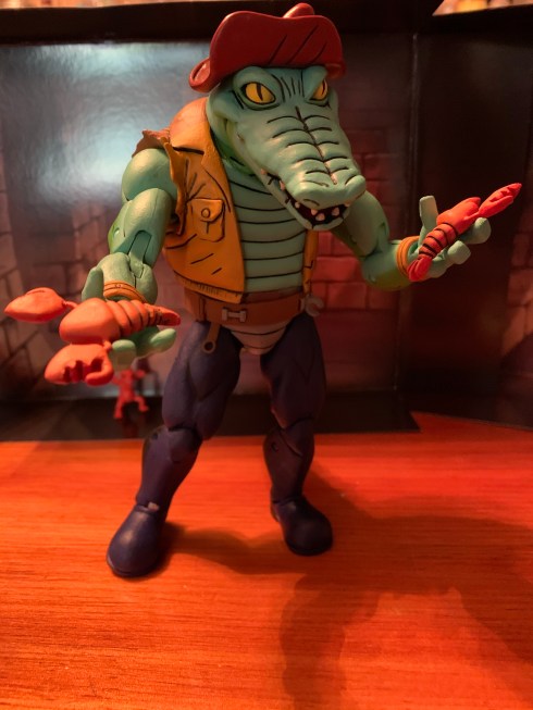 And maybe that’s what makes him expensive, because it’s certainly not the plastic. Leatherhead doesn’t come with much in the box, just two extra sets of hands leaving us with fists, gripping, and open. Why does he have gripping hands? I don’t know because it’s certainly not to hold any included items because there are none. He only has the one portrait, which is a bit of a bummer since he seems to have a pretty expressive few panels in the comics. My criticism of this release is basically the same as Cryin’ Houn’ which is to say I think NECA could do better. They already have tooled some wrestling weapons, so why not stick them here? We could always use more chairs. A break-away table would have been pretty rad, even if no such thing took place in the books. Wrestling figures should be fun to design because of all or the shenanigans that can go on in and out of the squared-circle so it’s disappointing to not see NECA take advantage of suck.