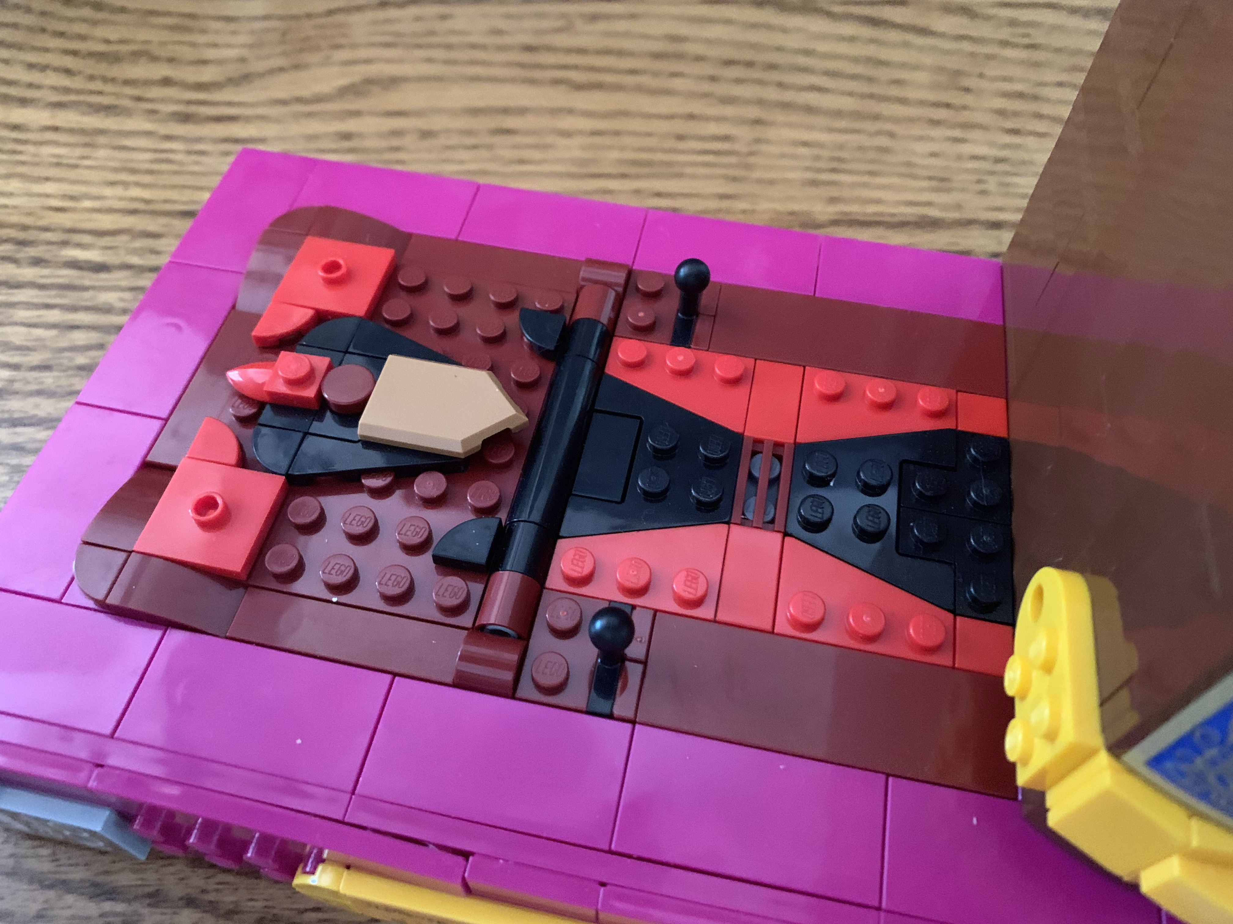 For the presentation, Lego opted to forego stickers entirely for the Game Boy. All of the graphics you see in the pictures are printed onto actual bricks including the vent on the front and the “battery compartment” on the rear of the system. It’s definitely appreciated, especially for something people will want to hold. Lego also prioritized making the Game Boy have a tactile presence as well. The directional pad is only partly held down by bricks and is floating atop some rubber pieces so it actually pushed in when pressed. The Start and Select buttons are Lego, rubber, tires and the A and B buttons have some depth to them as well. For the volume and contrast, a Lego gear was inserted. It looks the part, and provides more immersion. Even the on-off switch was done with a sliding piece that really clicks into place.