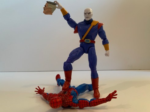 And that’s what it all comes down to for me with Chameleon. Yeah, he doesn’t impress with the articulation and there are some design flaws that bug me, but he looks like the character from the show. He’s a big dude and he’s sculpted as such. The matte finish across the board just makes him look nice and they really nailed the face. He comes with an extra set of hands, two guns, and the mask accessory which is practically a motherload for a Marvel Legends figure being sold at the standard price. For that reason, I can’t really be down on this guy. He’s fine. If you like Chameleon as he appeared in the Spider-Man cartoon from the 90s then I think you’ll be happy with this one. He’s not going to be one you fiddle with much, but when you look to your shelf and see him standing there staring a hole through your soul you’ll probably think “Man, Hasbro kind of nailed that one.”
