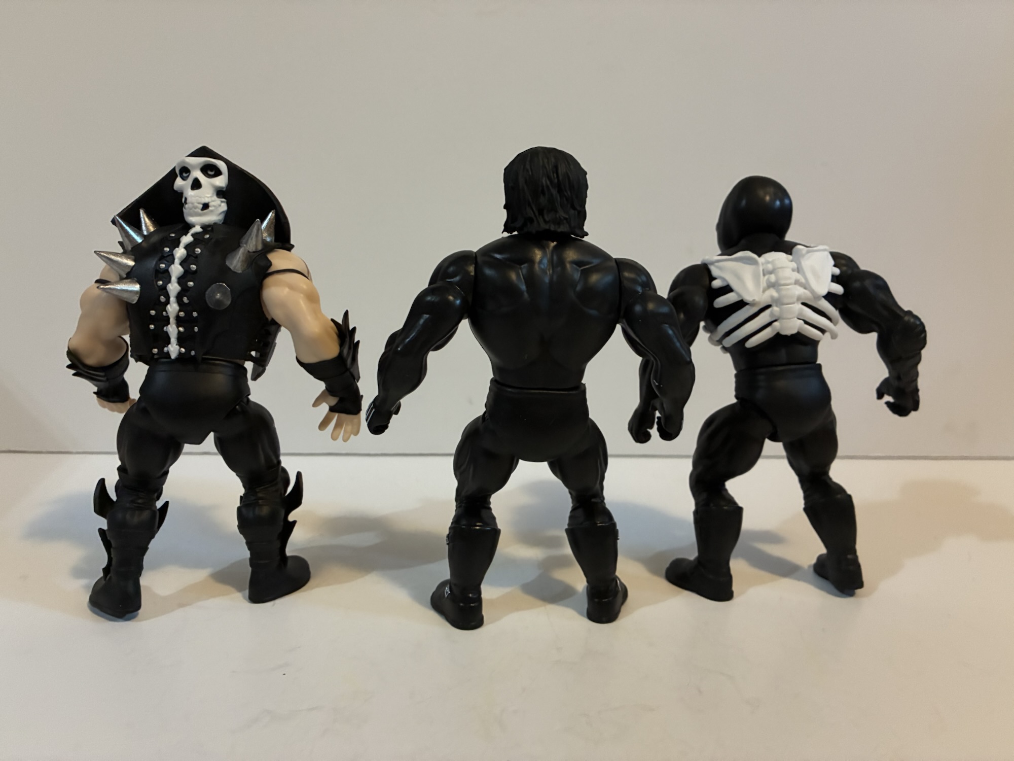 There’s not much to say about articulation here. It’s very basic as we have a swivel at the head, shoulders, and waist. The hips are a ball-hinge, but since the legs are preposed they’re not particularly useful. As a trio, it’s a fun mix on the shelf, but sticklers for era may be annoyed. This is basically 80s Glenn and modern day Jerry which might bother some. It might have made more sense to base the figures off of a specific show in the 80s, maybe set during the Walk Among Us era, and then do another set based on the current version of The Misfits. It’s also a little disappointing that Doyle didn’t join in on the fun. He is his own, separate, license and I’m guessing Super7 tried, but he either wasn’t interested or they couldn’t come to an agreement. Maybe he still has regrets over those dolls they used to sell at Hot Topic? And it’s unfortunate that The Misfits never really had a permanent, iconic, drummer. I guess Robo is the most famous? It might have been fun to make The Fiend the drummer, but since we don’t have a guitarist I guess it doesn’t feel like a missing piece. Super7 likely doesn’t want to tool any drums anyway.
