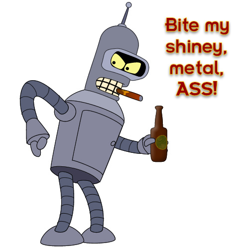 Santa then approaches Bender who immediately thanks him for saving his life then begs him not to kill him. Santa laughs and tells Bender he’s not here to kill him, but he does need his help to save Xmas. Sappy music chimes in and Bender remarks, “Gee whiz, Santa, you want me to help you save Xmas?” Fry then cries out, “Don’t do it! He’s evil,” and it’s Santa who turns to Fry and says “I know he is, but I have no choice!” Robot Santa needs Bender to help him complete his brutal rampage, because without that it just wouldn’t feel like Xmas. He the turns to Bender and says, “Bender, won’t you join my slaying tonight?” All Bender can muster is a, “Well, ’tis the season!”