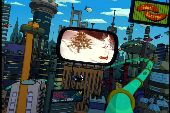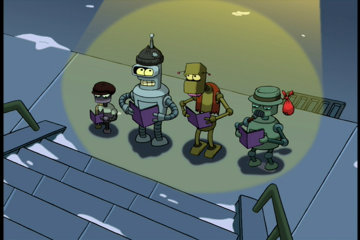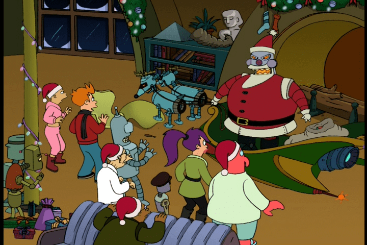 “Xmas Story” is our introduction to Christmas in the year 3000. Philip J. Fry (Billy West), the time-displaced protagonist of the series, gets to learn how much Christmas has changed over a thousand years and we, the viewer, get to experience the same. Turns out, a robotic Santa Claus had been invented several decades prior to that story which went crazy. Its standards for niceness were too high and thus everyone was deemed naughty. Santa, apparently no longer content to hand out coal to naughty children, decided that it would prefer to kill the naughty instead making Christmas one of the worst days of the year.