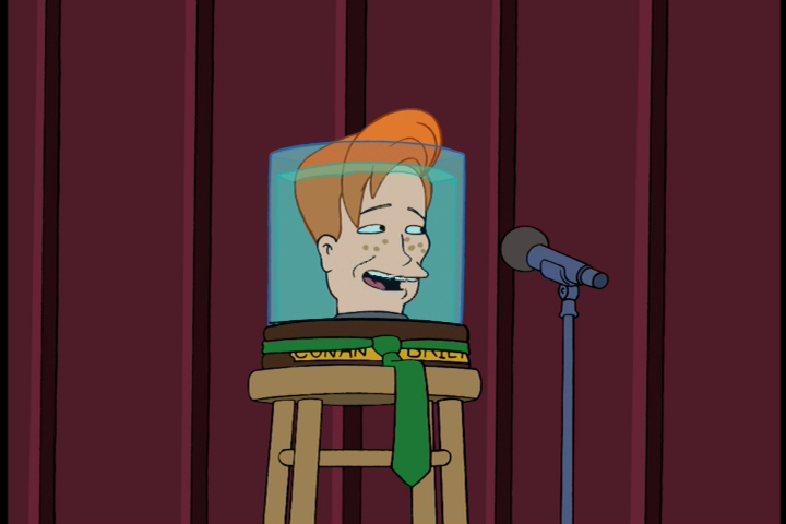 The episode begins in a typical manner. Our tagline is “This episode performed entirely by sock puppets.” which is a damn lie! The snippet of an old, public domain cartoon just before the Planet Express ship crashes is some screaming, black, dog character (Bosko? – Yes, according to Wikipedia it’s Box Car Blues which is a Bosko short). When the episode begins, we find the Planet Express crew watching television, a familiar sight on Futurama. The news is on and our lovely anchor, Linda (Tress MacNeille) is sharing a story about a futuristic version of a Polar Plunge. You know, those charity events where people dive into frigid waters at Christmas time sometimes dressed in festive attire? Well, in this version the people are jumping into a river of ammonia and we get to see it happen live on television! As Morbo (Maurice LaMarche) informs us after, there were no survivors.