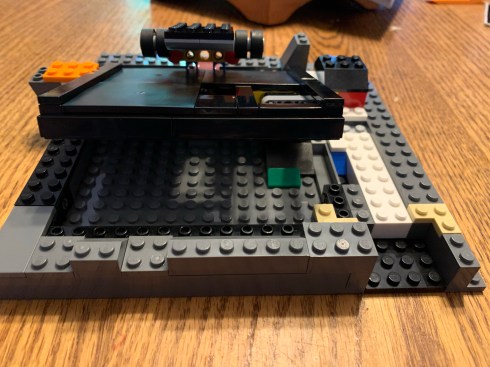 After that is done, the only thing left was to assemble the front of the TV and the bottom leg supports. This was an enjoyable build that comes together pretty fast. Lego was creative with the television dial by using a gear that just rubs a soft, plastic, green, rod to create a clicking sound when the dial is turned. My kids were quite amused by that and even more amused that this is how a TV was once operated. There are more tiles with graphics printed on them for things like volume control and even a UHF toggle. The last step is to create the TV stand which is rather simple. The finished product rests on top of this with some bricks placed on the bottom of the set used as guides so while it doesn’t snap in place, it fits into a track of sorts so it’s not wobbly.