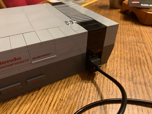If you lack the Lego Mario figurine, one substitution for him is the 2020 Hallmark NES ornament which plays sounds from the game. My kids didn’t notice the sounds didn’t sync with the TV and didn’t care as one would turn the handle and the other would hold the Lego NES controller and pretend to play. The console doesn’t physically hook-up to the television, you’re just supposed to place it nearby to complete the look. And this works fine. If the TV didn’t have the image built onto it you could probably fool someone from a distance as Lego really nailed that old school look of a television. And the NES is also quite convincing, especially to people who haven’t looked at a proper console in 30 years.