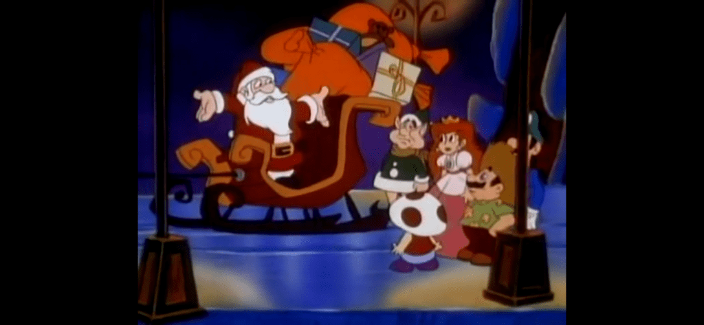 Pretty convenient all of these video game cartoons landed so close together, eh? It’s by design. This list has a subjective element to it where I did try to group things together to some degree. Especially when it comes to kids specials and the more subversive adult comedy ones. And spoiler alert, tomorrow very much has a theme to it. Anyway, this is another lousy Super Mario Bros. cartoon that takes place during Christmas and this one has a more conventional holiday plot. Koopa is out to take over Christmas and Mario and the gang have to save Santa. Toad learns a lesson and Luigi gets to help out. It’s all pretty conventional. There’s some awful animation and if you watch the full episode this is from you get some live-action stuff that has nothing to do with Christmas. Seriously, what a wasted opportunity. The only redeeming element to this one is basically the same as the Super Mario World cartoon: Koopa. I find him entertaining. Oh, and it’s also really short.