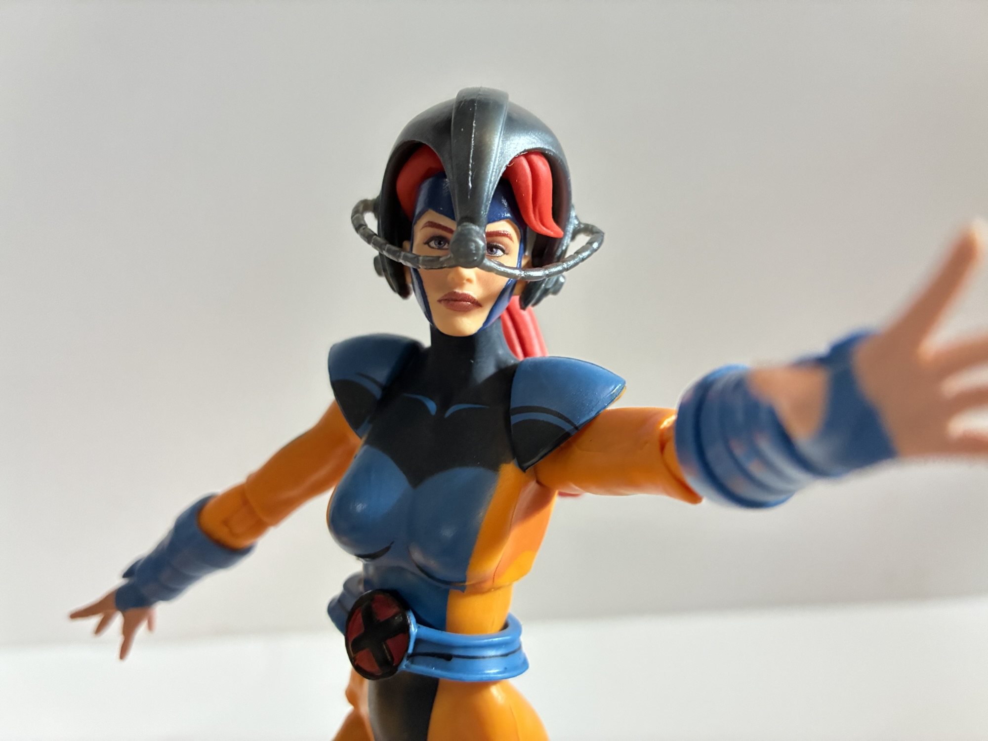 Xavier comes with just a few accessories, which is often the case for Legends these days. He has two sets of hands: fists and trigger hands. I have no idea why Professor X would come with trigger finger hands, but I guess if you want him to wield a gun he can. He also has a fifth hand which is a two-finger pointing left hand for doing mental power poses. It actually has some sculpted in lines to make it look like an actual glove which is surprising. It may be the same hand that came with the Age of Apocalypse Gambit so that may be how they justified the tooling cost. Chuck also comes with a new Cerebro helmet. At least, I think it’s new. It’s different from the one that came with hoverchair Charlie and it’s fine. It’s that swirly, gray, plastic Hasbro favors over shiny paint for metallic objects and it fits on his head just fine. There’s a hole on the back which had me thinking that was for X-Men ’97 Jean’s ponytail, but the helmet really doesn’t fit on her head because of her hair.