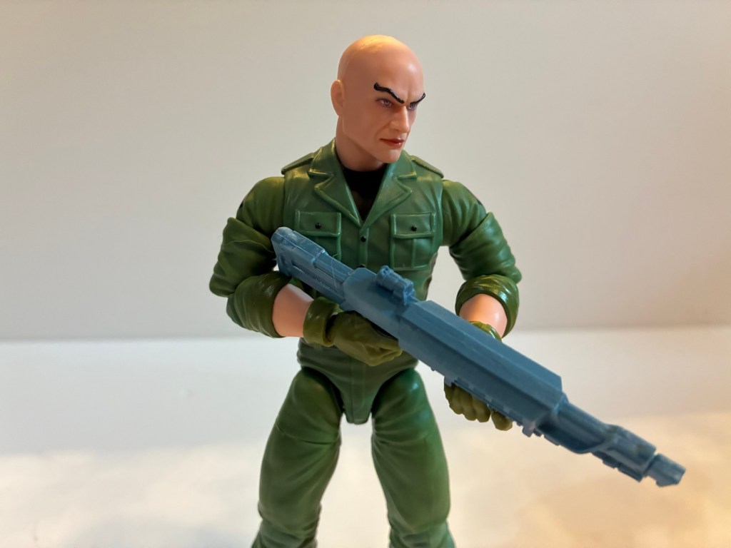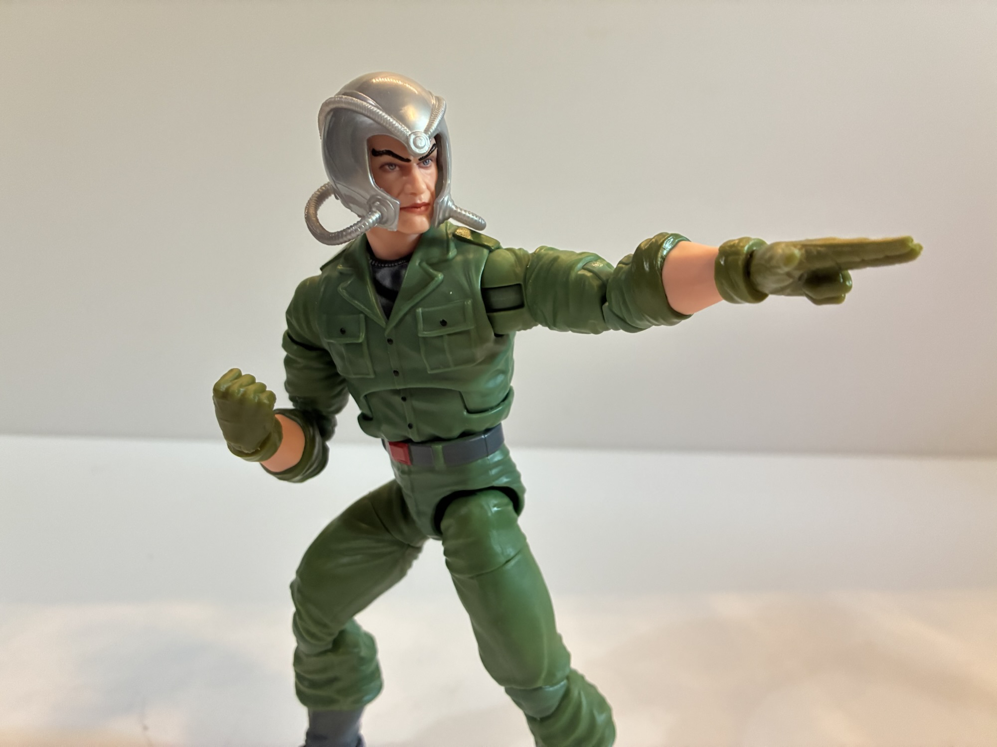 Xavier’s articulation is pretty standard Legends fair, though it has its own quirks. The head is a double ball peg and it’s actually the best double ball peg setup I’ve seen from Hasbro. The lower ball isn’t as deep as it normally is in the neck and he gets good range looking up, down, and tilt thanks to another joint at the base of the neck. Of course, the lack of any hair to work around is playing a role, but good is good. From there we have typical shoulder ball pegs, bicep swivel, double-jointed elbows, wrists, ab crunch, waist twist, hip, thigh, double-jointed knees, boot cut, and ankle hinges and rockers. The range on the ab crunch is pretty poor going forward and back, but aside from that the other joints are fine. The two-finger pointing hand and the trigger hands all have vertical hinges which is interesting. Not so much the trigger hands, but the two-finger gesture is an odd choice. I’m not sure which direction I’d want the hinge to go in this case. The waist twist being above the sculpted belt is a bit unfortunate because it’s ugly. If they could have set it inside the belt it would have looked better, but also cost more.