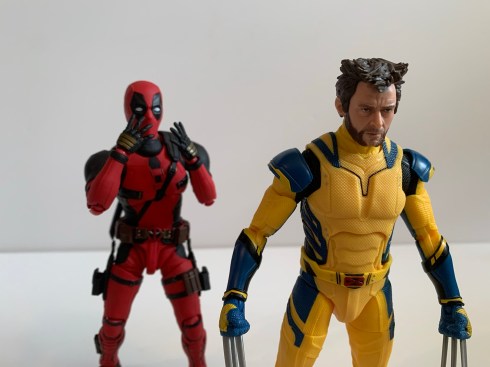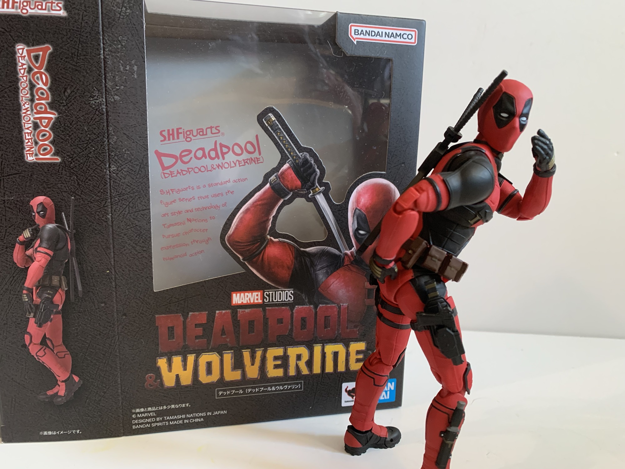 I may like that figure, but I have always been interested in something a bit more premium. Legends may be the only game in town when it comes to retail in the US, but for specialty shops and online we have the imports. And in this case, I’m talking the Bandai/Tamashii Nations S.H.Figuarts line. I am very familiar with the brand thanks to all of the Dragon Ball product that’s been released and I’ve had my eye on the Deadpool offerings for awhile. I passed on the first take because Bandai, for some reason, did not include any guns in the package. Deadpool kind of needs those so no guns meant no sale. I don’t know why that was, if it was a Bandai thing or a Disney one. Warner Bros. did ban guns from being included as accessories with DC action figures – did Disney briefly consider the same? I say briefly because it didn’t impact Hasbro or really any other figure release I can think of. The issue was rectified with the Deadpool 2 version of the character, but that featured the much darker and drab color palette from late in that movie which wasn’t really what I wanted. For Deadpool & Wolverine though, I finally found a version of the character I was willing to throw some money at.