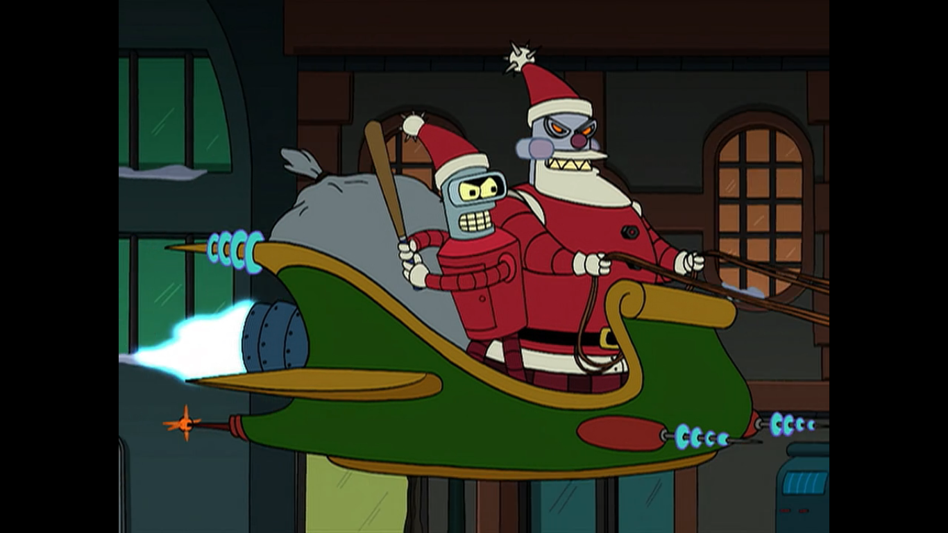 Enough of that sentimental bull crap, let’s cause some mayhem! Futurama is unique in that it turned Santa into a villain. Well, it was unique until American Dad! and Teen Titans Go! came along, but their murderous robot Santa is still his own brand. In the follow-up to the first Xmas special, the Planet Express crew is tasked with finally putting an end to Santa’s murderous rampage and they’re actually successful! A problem arises when they take it one step further and have Bender serve as a new Santa, one that will actually deliver presents to all the good girls and boys. After generations of growing up with an evil Santa, the people of Earth aren’t so willing to accept this reformed Santa and Bender is put through the ringer. He’s eventually jailed and sentenced to death for being Santa and the only way to save him is to free the real Robot Santa whom the crew trapped in the ice of Neptune. Do you believe in Xmas miracles? Well your faith is rewarded! Robot Santa is freed and saves Bender and the two are able to inflict carnage and mayhem on the world just as Jesus intended. Merry Xmas everyone!