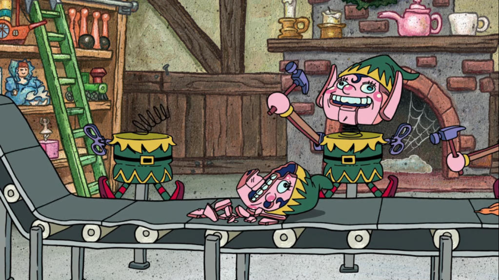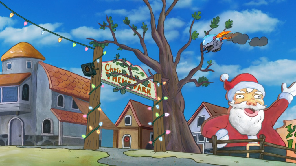 Where things stumble a bit for me is in the actual journey. Every road trip story needs a part where the journey clearly has gone wrong and a wrong destination or a wrong turn is often the device utilized. Here, it’s a dilapidated amusement park which I guess was fine? It’s a way to work in Patchy the Pirate who played a role in past SpongeBob Christmas episodes so I guess it’s kind of his thing. My issue with it is I think we’re denied more time at the North Pole. There are some unusual dynamics going on up there between the elves and reindeer and I’d have appreciated some more context there. Maybe we could have even had time for Mrs. Claus? It all leads to a sensible resolution though and I like the somewhat violent ending with Plankton. It caught me by surprise and that’s a pretty hard trick for a Christmas episode to pull off.