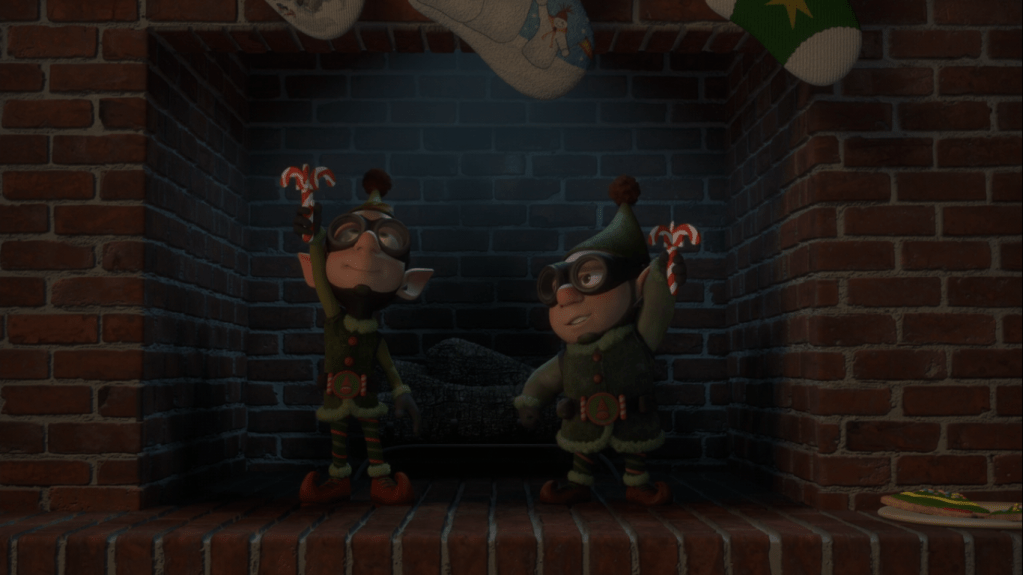 The short begins with an image of a cozy fireplace at night in a very scenic home which is just used to display the title card. There’s no big intro or anything since this is a short one, or a “Stocking Stuffer,” as it’s branding would indicate. We’re then shown an exterior shot of Santa’s work shop at the North Pole while some text over the screen informs us that it’s December 21st like this is some episode of 24 or something (it was 2010). We soon find our leads, Lanny and Wayne, as they’re walking in a shadowy hallway and discussing a meeting through whispers. Lanny seems especially on edge, but both jump when Magee (Sarah Chalke) emerges from the shadows. She tersely informs them of their tardiness and quickly gets to the point. She is merely the facilitator of this meeting as it’s not with her, but someone else. Someone in a big sleigh, with a red coat, and white gloves.