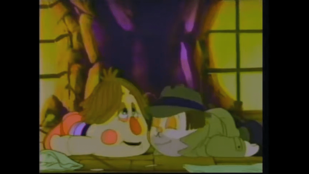 Pillow People were big and big in the 80s which meant an animated TV special was practically a certainty. Animation was so cheap back then that companies were willing to commission them basically as an advertisement. And in 1988, the Pillow People made the jump to television with a Christmas special. If you’re into animation, then you know the name TMS. Tokyo Movie Shinsha is one of the premier animation studios out of Japan. They worked on various Warner Bros. series and were pretty much always the best looking episodes for those shows. Remember Clayface from Batman: The Animated Series? That climactic scene of Clayface’s visage distorting and warping between looks was TMS. Ever see Akira? That’s TMS. By the mid 90’s, they were firmly established to the point where they didn’t need American television jobs, but in 1988 they weren’t there yet and actually were in position to take on a project like Pillow People Save Christmas. I’m curious if TMS proper actually animated this thing. Sometimes big studios basically sublet their projects to smaller places and maybe that happened here. It’s still a Hell of a get for Pillow People and it’s my primary motivation for checking out this otherwise forgotten television special.