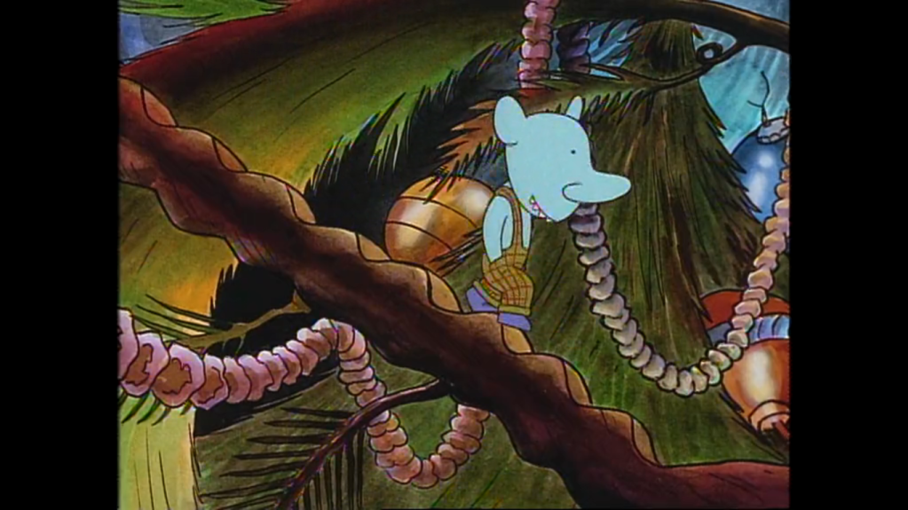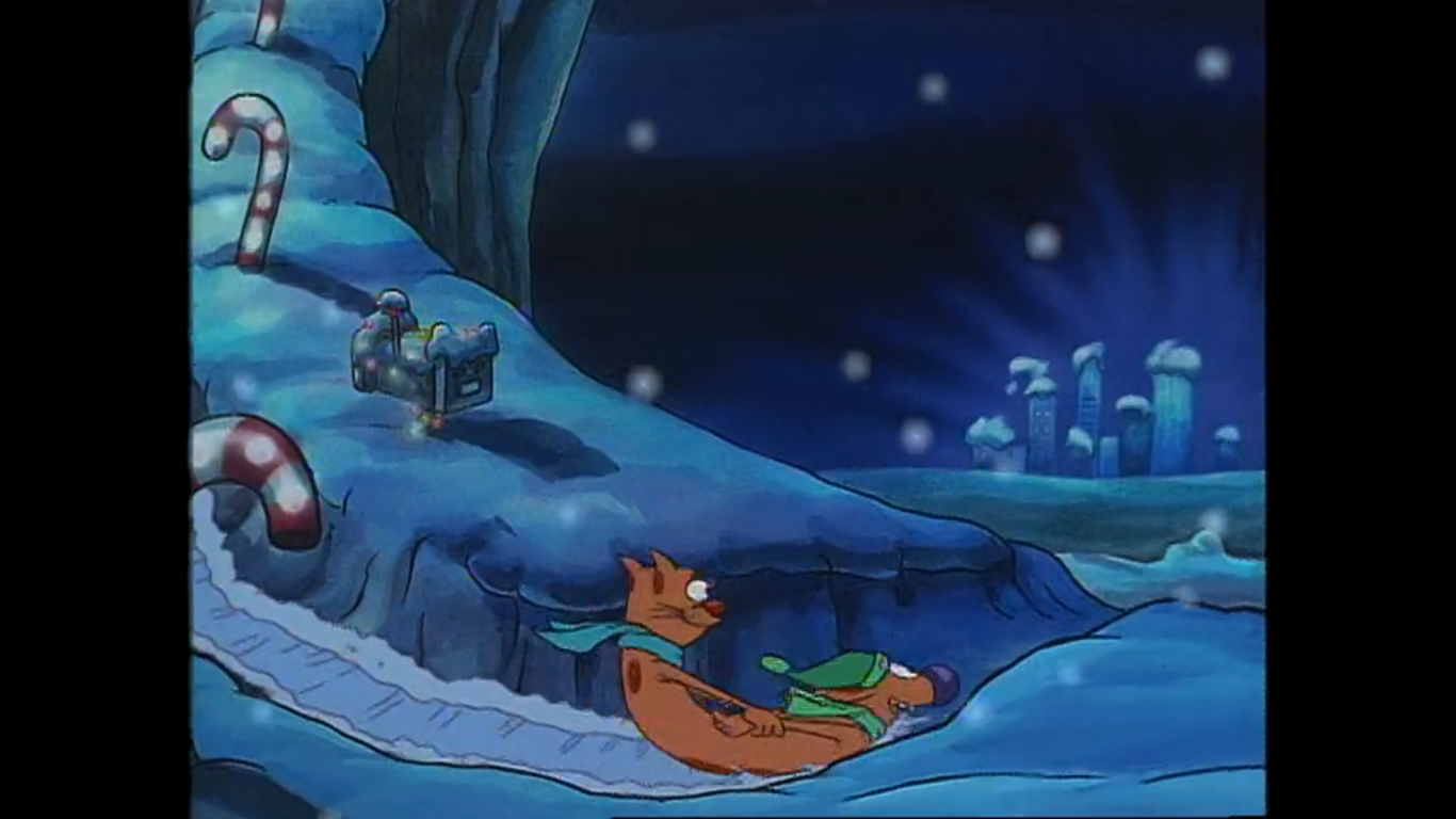 At least it’s an original tale and I only felt semi-lost by the inclusion of recurring characters whom I had no knowledge of. I don’t really need to know why a pack of dogs delights in beating up a cat, especially one who probably lies and cheats his ways out of problems like Cat. Winslow seems like just an asshole and no frame of reference needed there while Eddie is…well, he’s just there. I’m surprised they didn’t use him to make a Cousin Eddie reference. The look of this one passes the Christmas test as there was plenty of that present, until it wasn’t as part of the plot. Rancid and Rancine are as ugly as their names imply which I assume is intentional. Same for Winslow and the gang. There were plenty of not ugly character designs so it’s clear that the ugliness is a choice in places. This isn’t a Klasky-Csupo joint where just everything and everyone is unpleasant to look at.