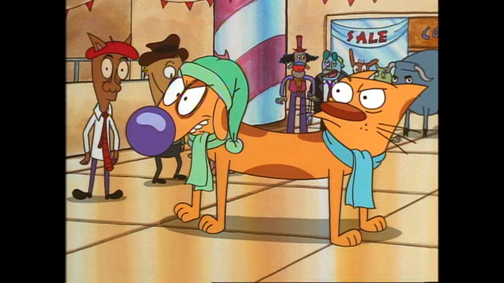 Last year, I made it a point to go through the vast majority of the Nicktoons Christmas specials I was at least somewhat familiar with. My cut-off was basically 1996 which coincided with the premiere of Hey Arnold! That was when I started to fall off of Nicktoons and Nickelodeon in general. I was entering my teen years and other things took priority. Plus, my preferred Nicktoons were more of the gross-out, slapstick, sort of toons like The Ren & Stimpy Show and Rocko’s Modern Life which Hey Arnold! did not resemble at all. However, upon reflection, I would have to say that my real Nicktoons cut-off is CatDog.