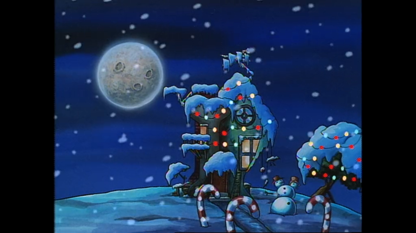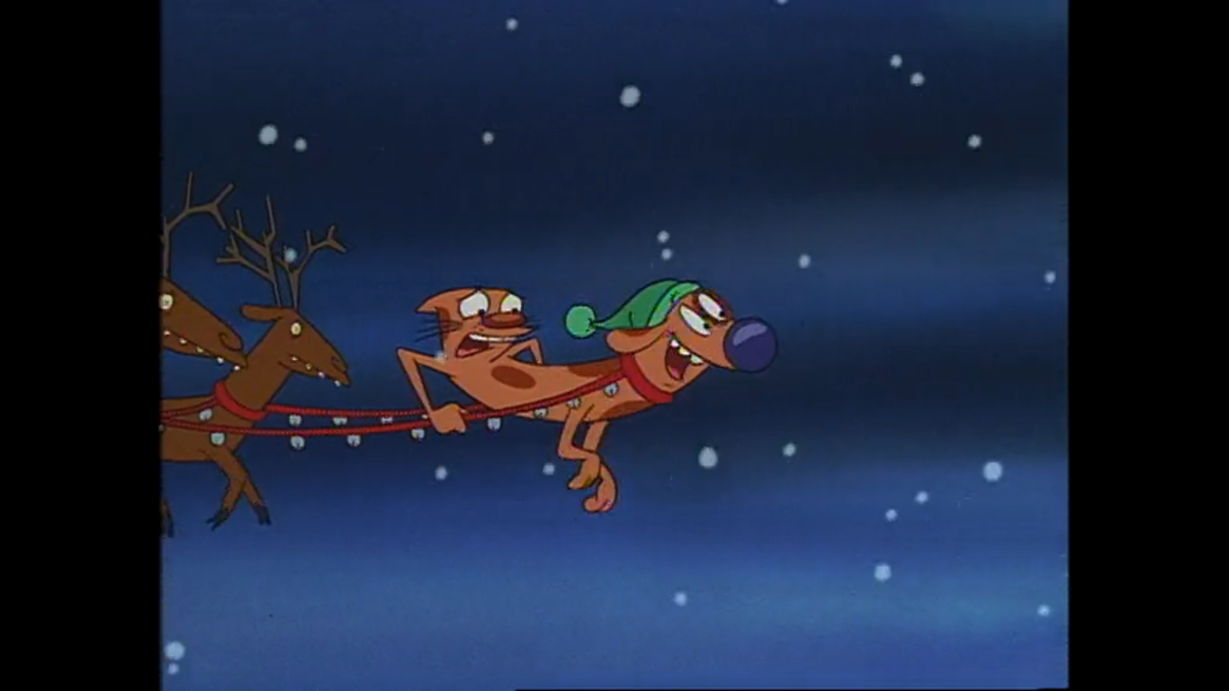And that’s because they’re with Santa! We cut to an external shot of the house all covered in snow and lights. There’s a magnificent full moon in the sky and Santa’s silhouette goes passing by. There’s four reindeer, and something peculiar leading the team. It’s CatDog, or more like Dog, who is basically a reindeer while Cat is holding on for dear life. He urges Dog to get them down in one piece, but Dog sees a garbage truck. This is bad for Cat, and Santa, as Dog lunges for it taking them with him as we fade to black on this holiday special.