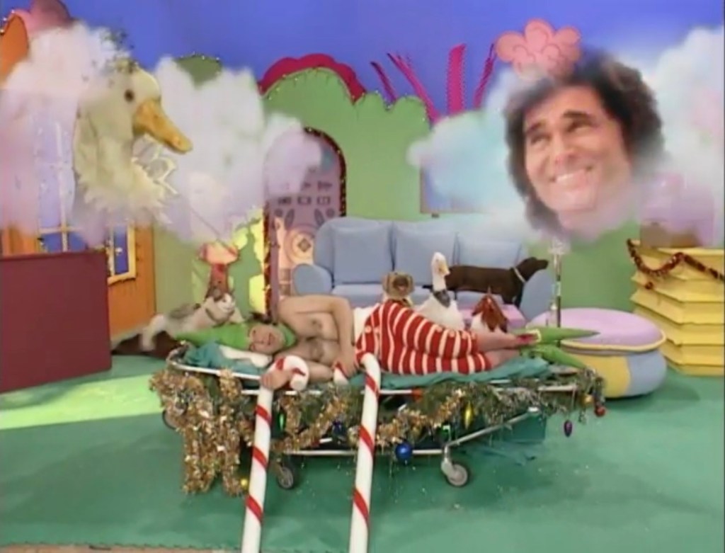 TV Funhouse was a short-lived Comedy Central show that was essentially a spoof on Saturday Morning variety shows for children. It had a host, live-action segments, puppets, animals, and cartoons only it was all intended for an adult audience. In this one, our affable host Doug has his spinal fluid stolen (because that’s where Christmas spirit dwells) by his animal companions who then go off and do a ton of drugs leaving Doug paralyzed in the studio to introduce segments. We get one about Christmas tension and another that’s a parody of the Harlem Globetrotters cartoon with this one featuring them dunking on Jesus. In between sketches, we just watch the “AniPals,” a collection of puppets and live animals, get high on the Christmas cheer they stole from Doug’s spine and attend church. It’s a lot of dark humor and the show is able to get obscene acts onto air, like one character sucking drugs off another character’s penis, because it’s all demonstrated through puppets. It basically comes down to two stuffed animals just smashing together. This is not a Christmas special for everyone and for me I have to be in the right mood for it. It’s all presented in a sincere manner, but it’s all farce.