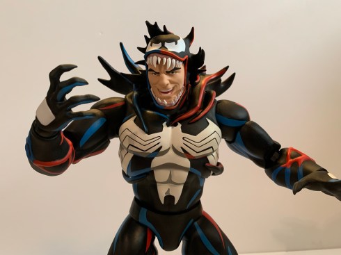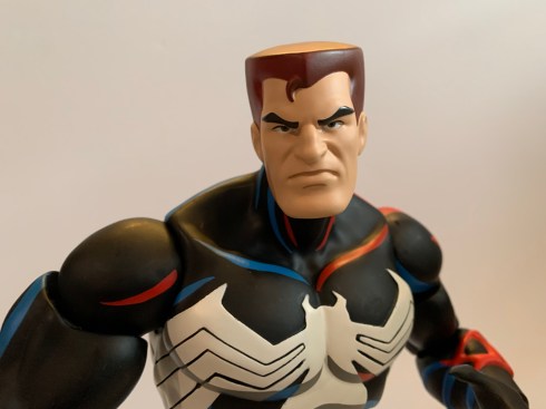 Spider-Man has a host of accessories, though this particular edition has fewer than the limited run solicited by Mondo initially. For an alternate head we just have the unmasked version of Pete. It looks exactly like the character from the show and the paint job is terrific. He does have a bit of a smile to his face which does present an issue for a different accessory, but not one that actually came with this figure so I guess we can’t really ding it for that. There’s also a mask accessory. It’s shaped like Pete should be able to hold it and have it hang from a gripping hand, but I couldn’t get it to work. I thought it might be intended for Venom, but then I remembered Venom came with his own Spider-Man mask accessory and that one is glued into his gripping hand. Maybe other villains will be able to make use of this one down the road?