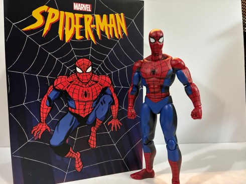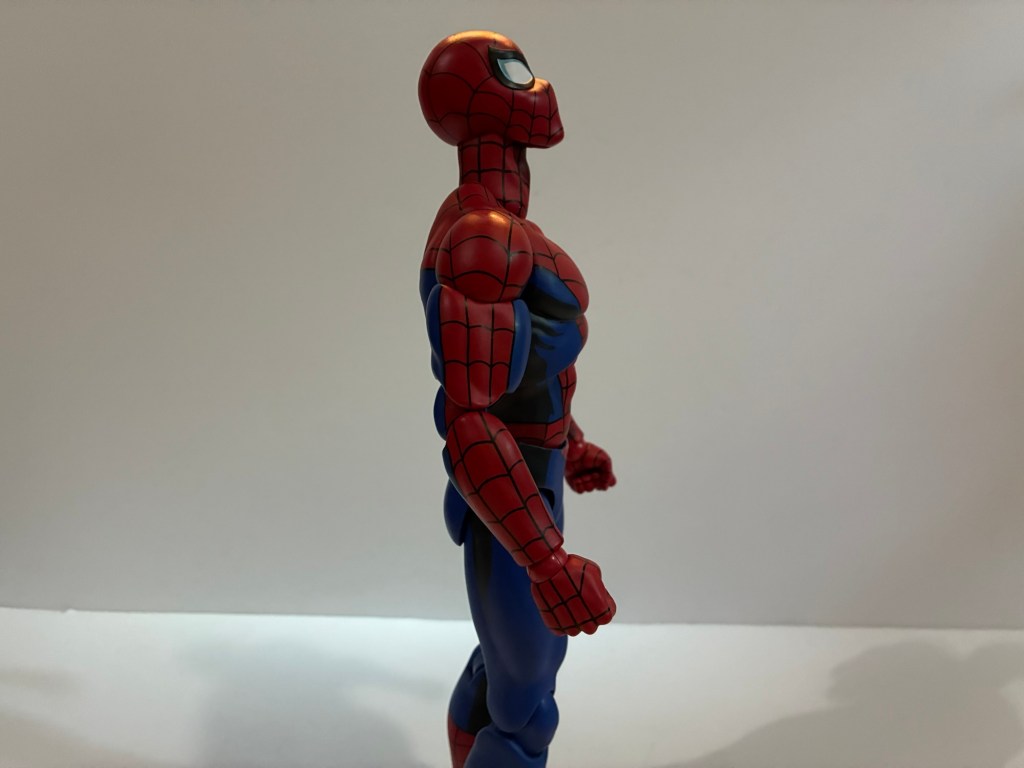 Spider-Man stands at about 11.75″ to the top of his head. I’m a little surprised they didn’t make him the full 12″, but I also don’t mind him being that much shorter than Venom. I tried to find some turn-around art from the show’s production for comparison, but the Internet has let me down. I can only compare him to still frames from the show and I have to say I feel like the silhouette is a touch off. Spider-Man in the 1994 cartoon is a pretty big Spider-Man. Pretty much all of the super hero shows back then had one style for all of the male characters. Flash Thompson would pick on Peter Parker for being a nerd, even though Pete was built like a linebacker. Here, the neck is a little slender and sits inside the silhouette of the head, which isn’t really how he was drawn. The shape of the head is also a little narrow which just draws even more attention to it. It was a Saban production and those were notoriously cheap for the time so there’s a lot of inconsistency from episode to episode, scene to scene, and shot to shot. Did Spider-Man look close to this in some shots? Probably, and there’s going to be some subjectivity on the part of the sculptor. For me personally I would have liked a slightly more beefy Spider-Man since that’s what stands out to me about the ’94 design.