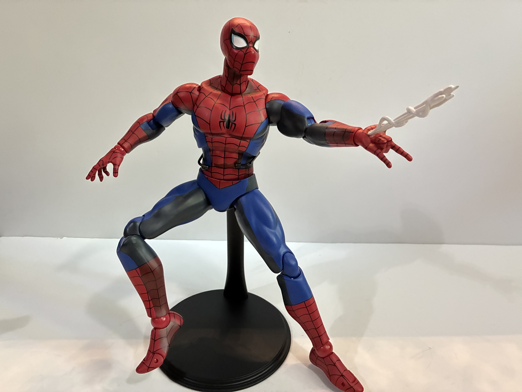 I was not expecting Marvel Legends levels of articulation from this figure, but I was hoping for more. He’s really stuck in vanilla poses which is not befitting a Spider-Man. If the joints just worked he’d be fine. Then you could hunch him forward or having kind of twisting in a swing pose. I was hoping for a basic crouch, not a super low one, but you’re not getting that either. He can kind of do a basic swing pose, but it’s a bummer that he doesn’t have a web line to just grab onto. If they could pop out of the web shooting hands that would have solved that. I’m just really disappointed in what this figure is capable of and it left me feeling that Spider-Man is a poor fit for what Mondo wants to do.